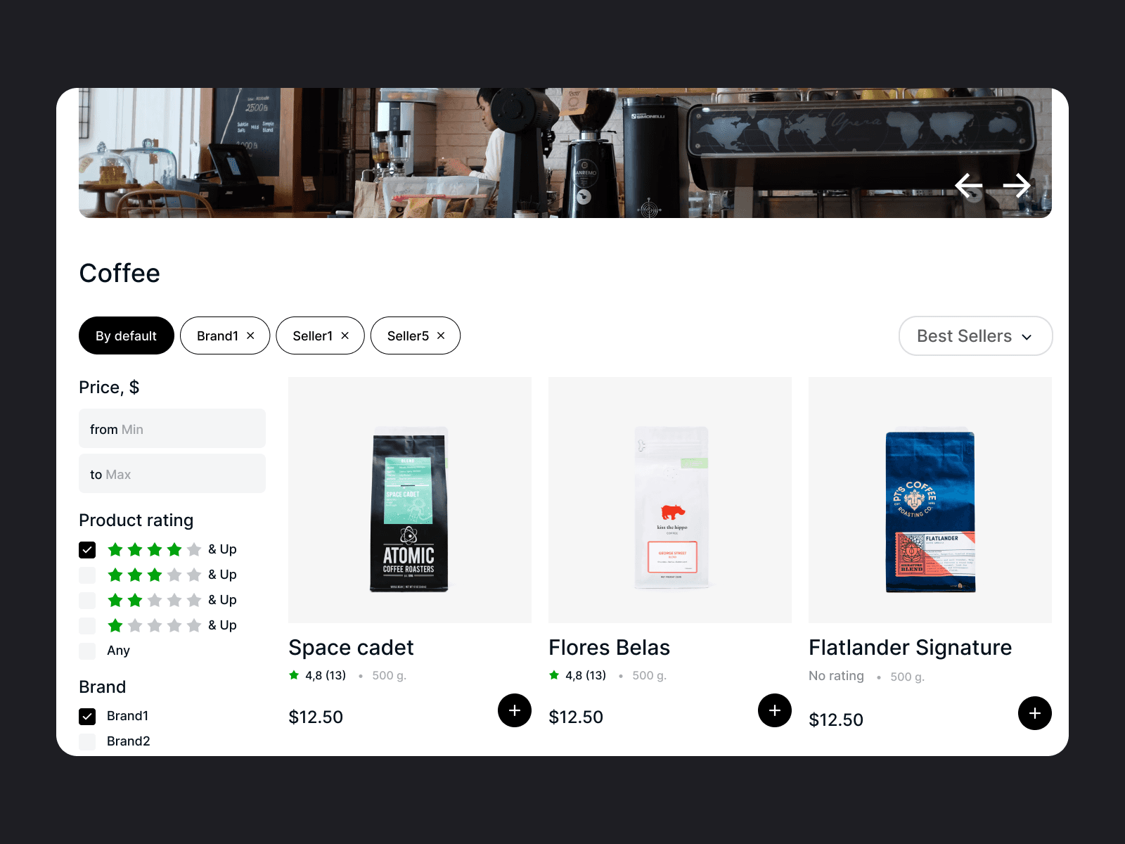 Designed and developed product reviews and ratings, filters and sorting on the homepage for a marketplace
